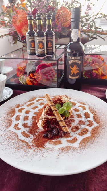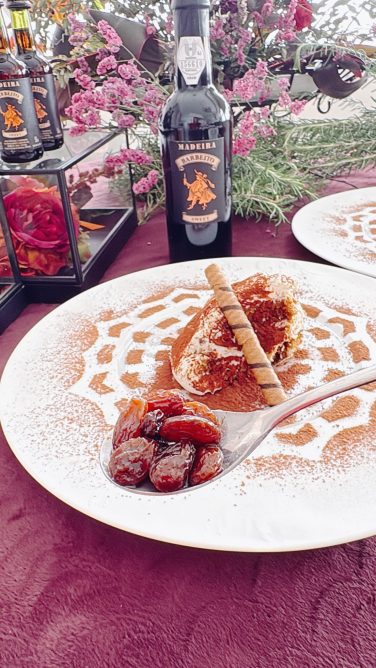その上に、マデイラをたっぷり吸い込んだドライフルーツ入りティラミスを。