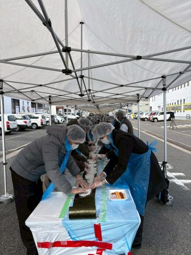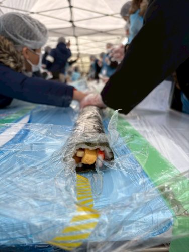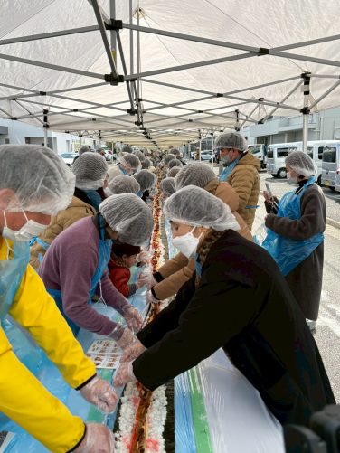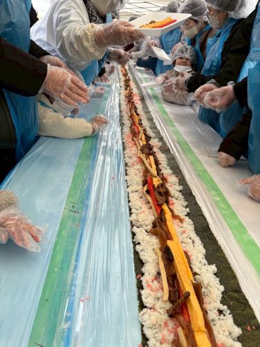 550名の皆さまと共に、100メートルの巻き寿司を無事完成させることができました。