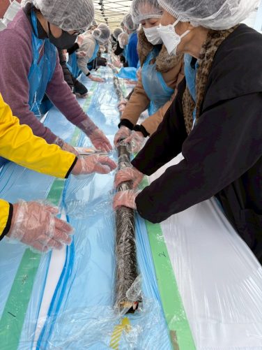 100メートルの巻き寿司が完成しました。